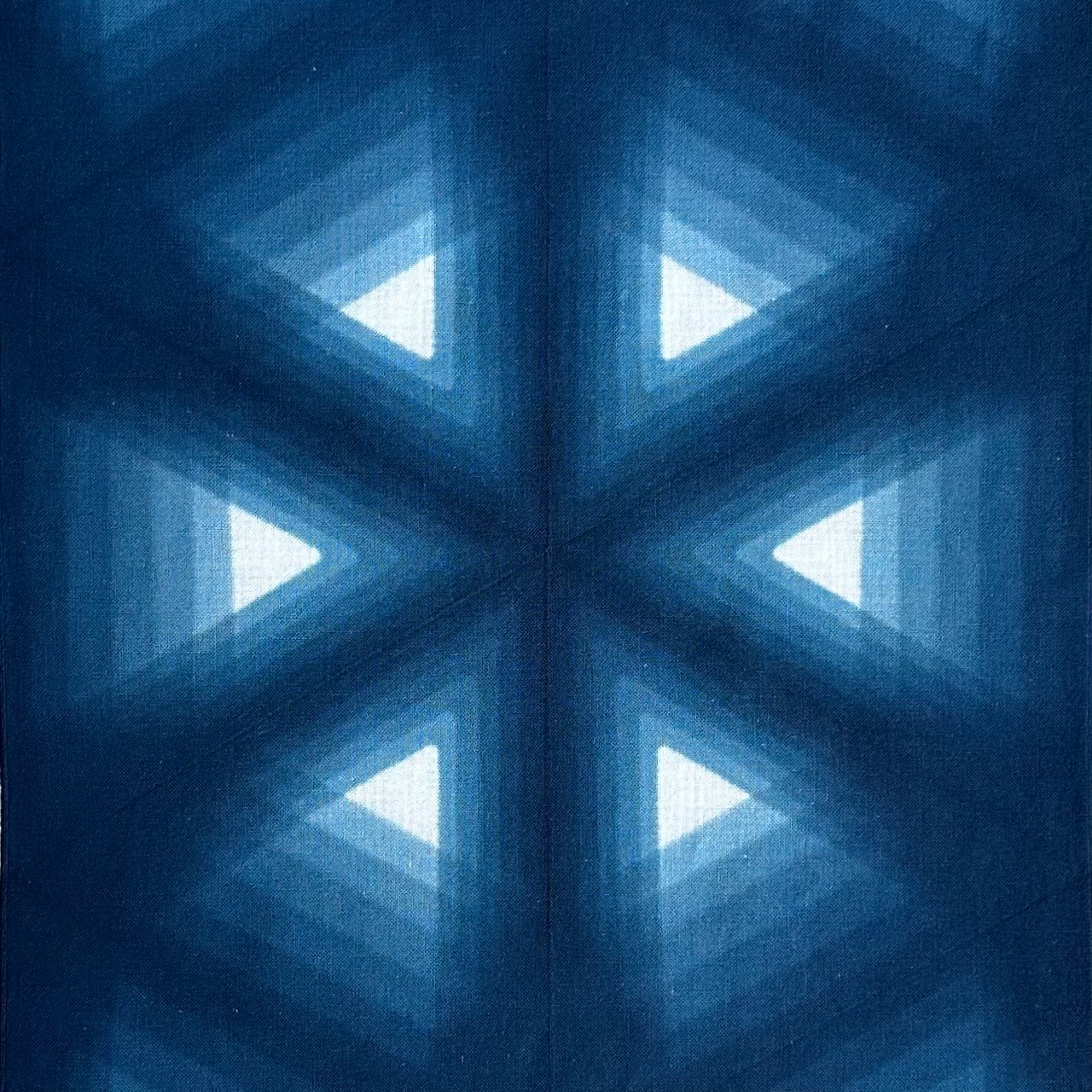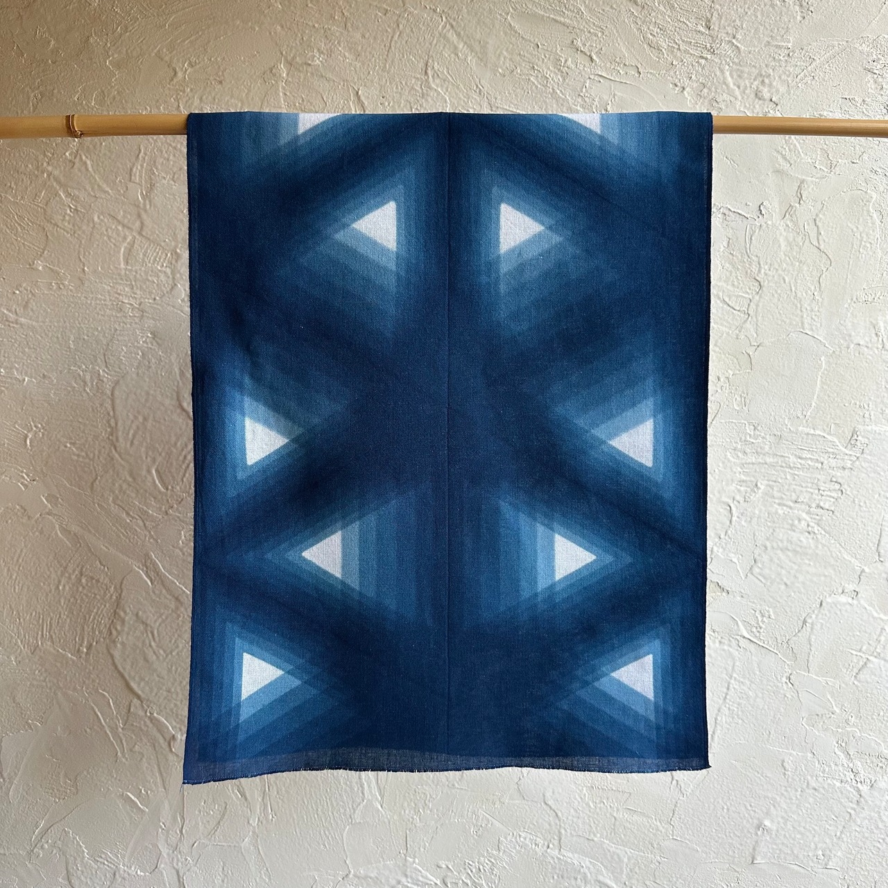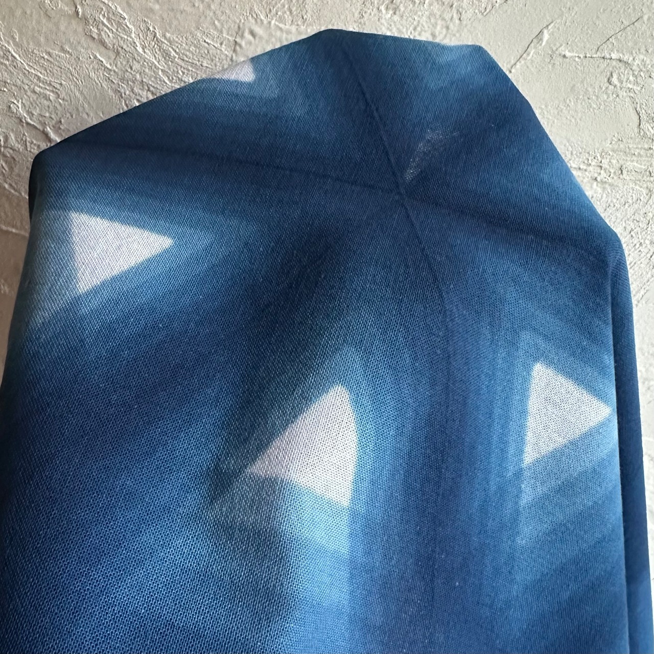 藍ならではの静けさ、深い色合いと、何度も何度も染め重ねる事で生まれる濃淡が美しい一枚です