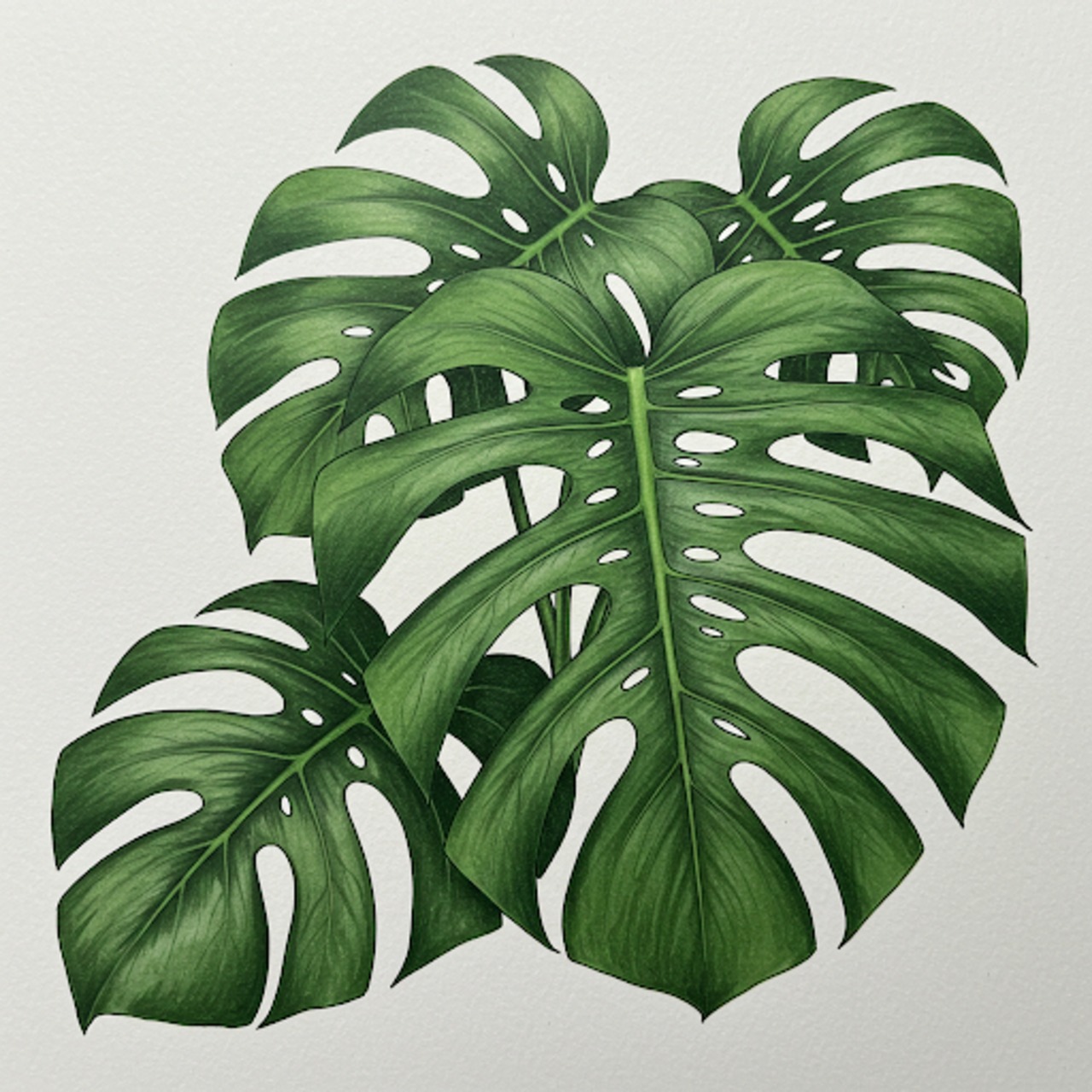中南米、熱帯雨林原産の植物で、青々として力強い葉で観賞用として人気の高い モンステラ をモチーフにデザインしました