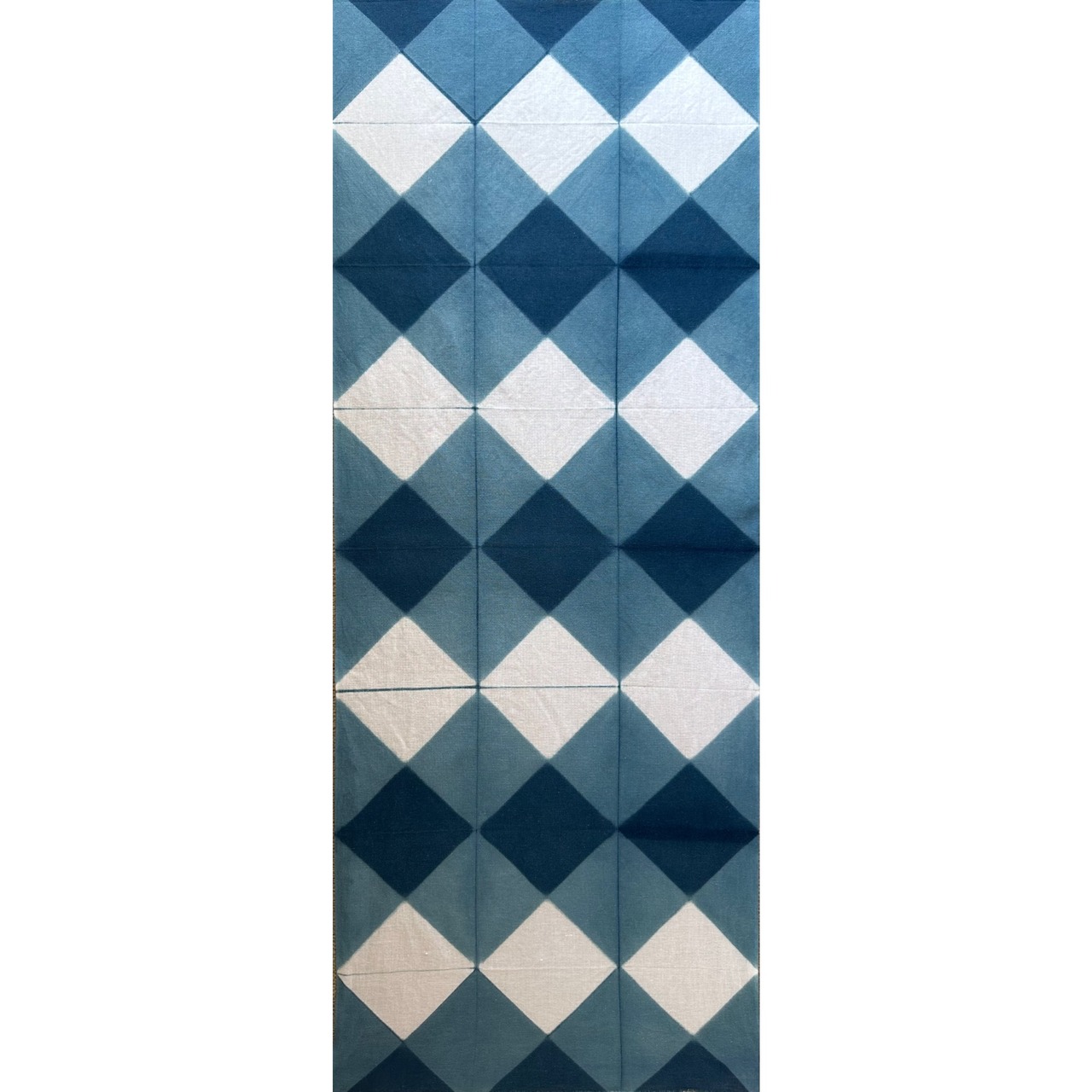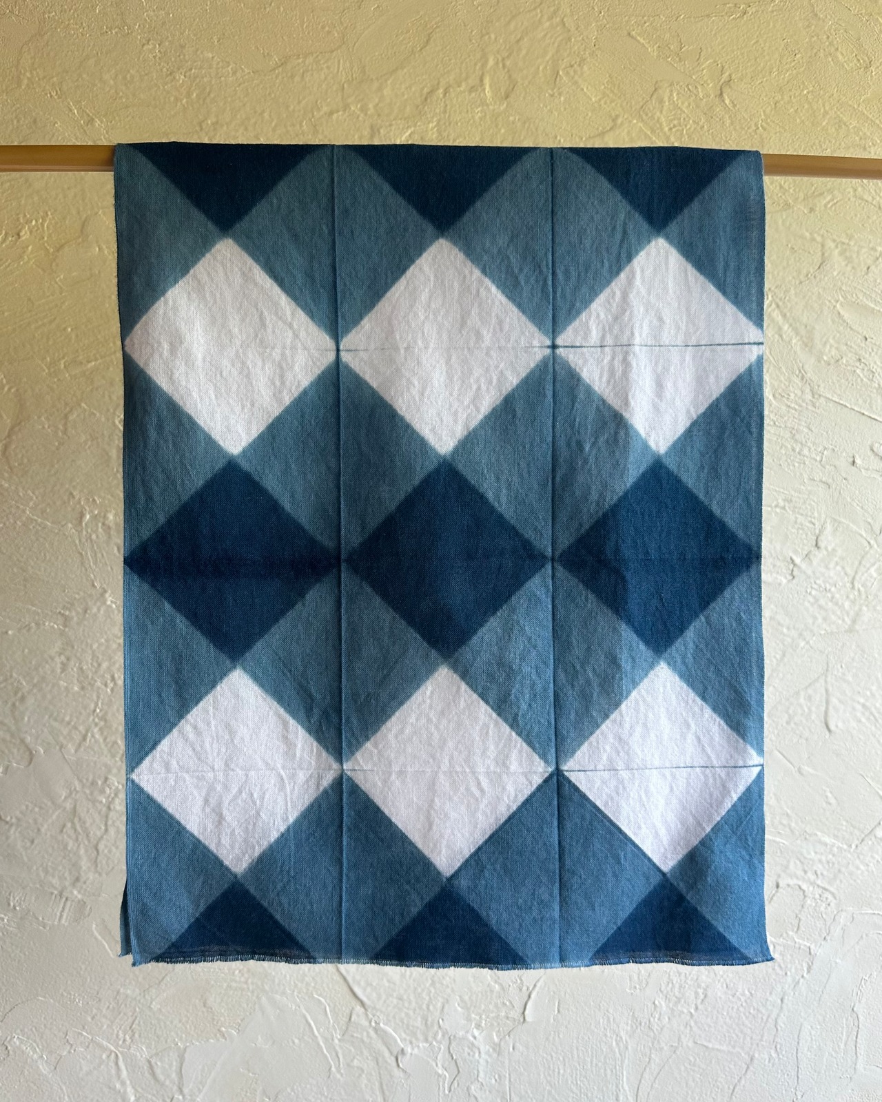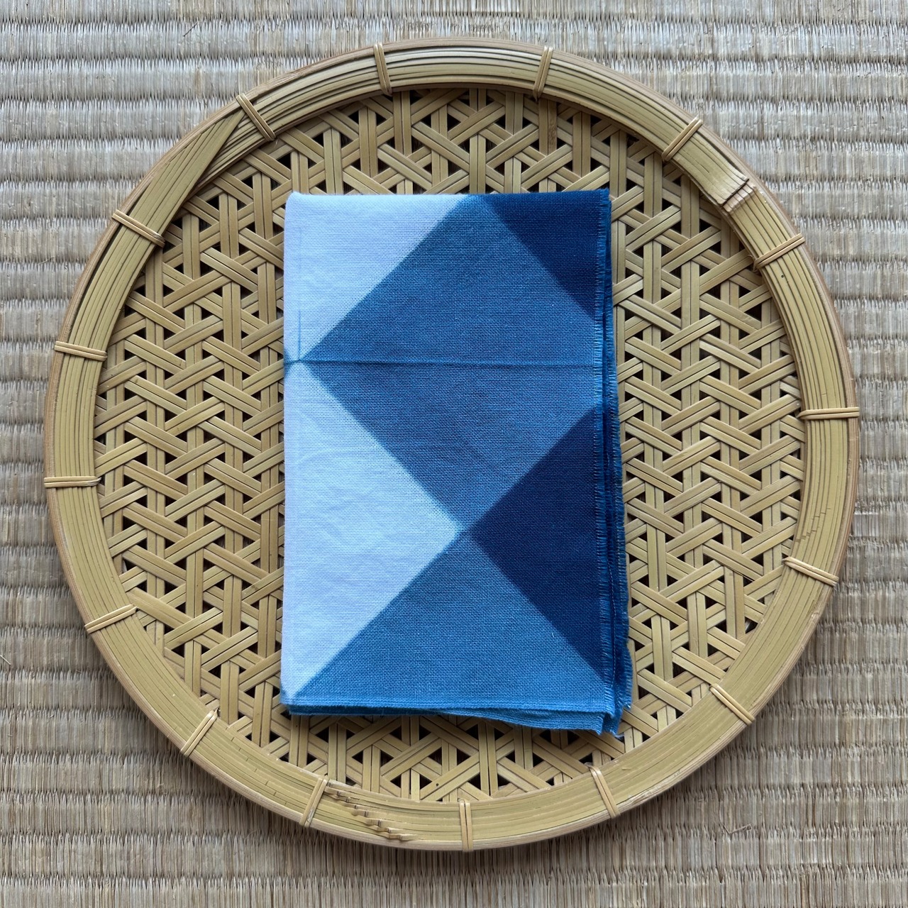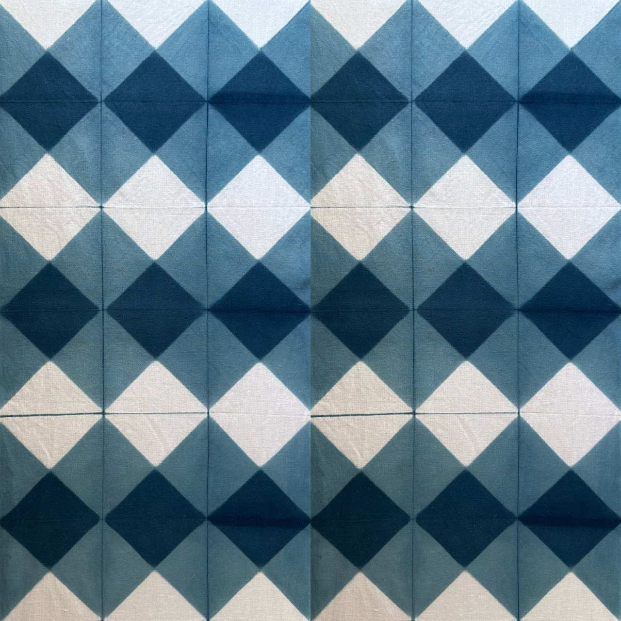 正方形を斜めに配列し、藍の濃淡で柄を表現しました