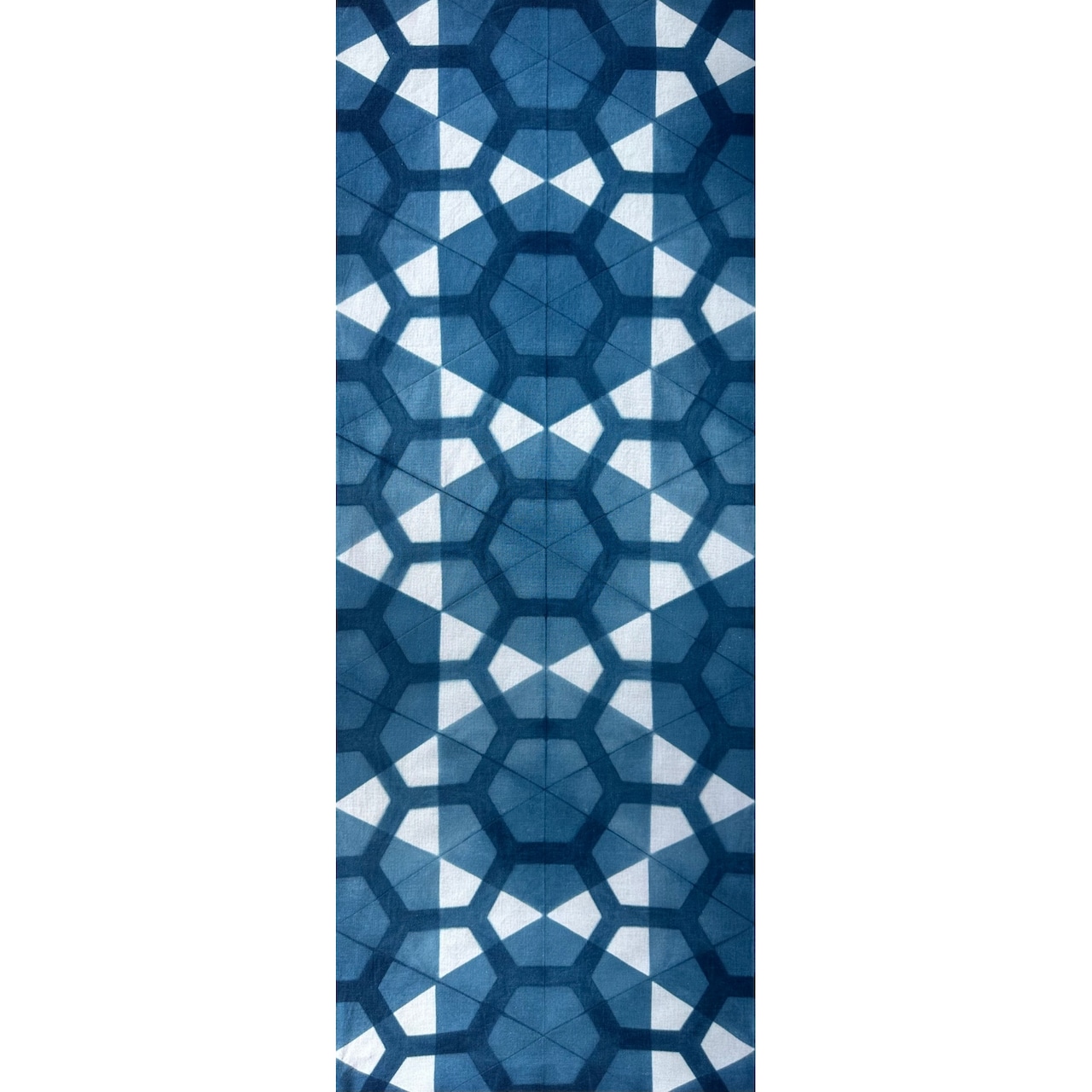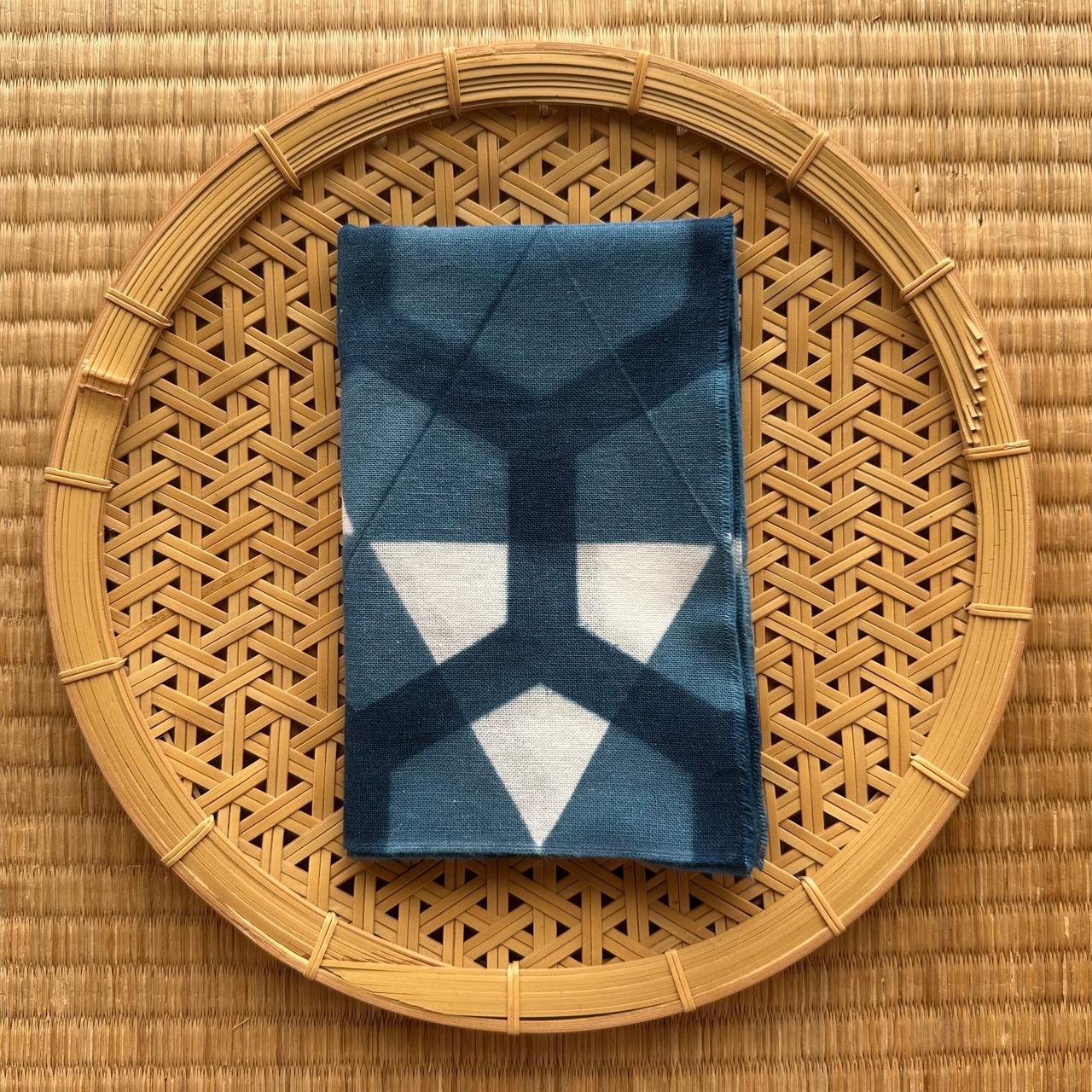 生地の色そのままの白から深い藍色にかけて、グラデーションをかける事で柄を表現しております