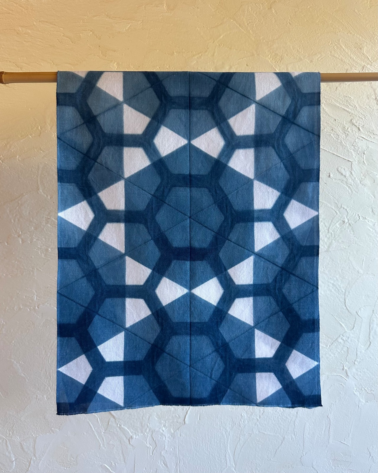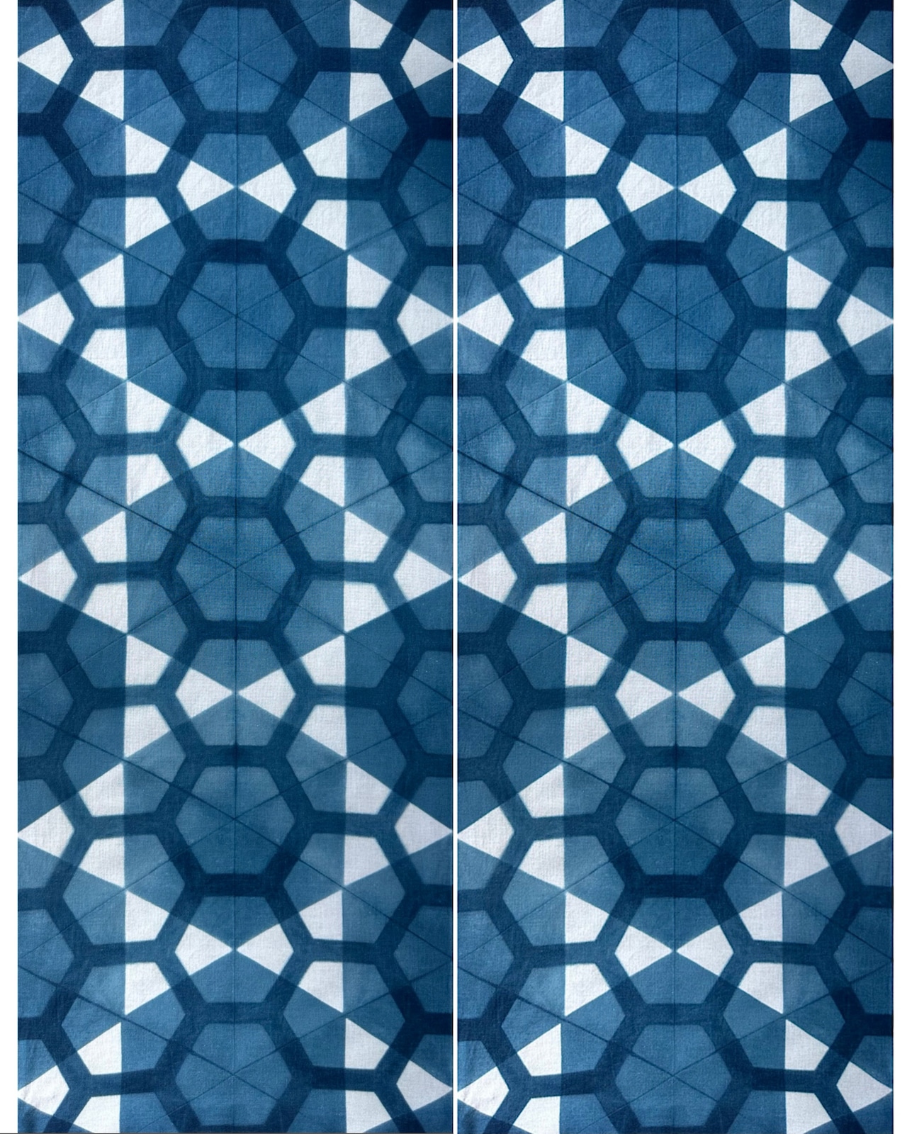 木綿布一枚一枚に絞りを施し、藍で染め上げております