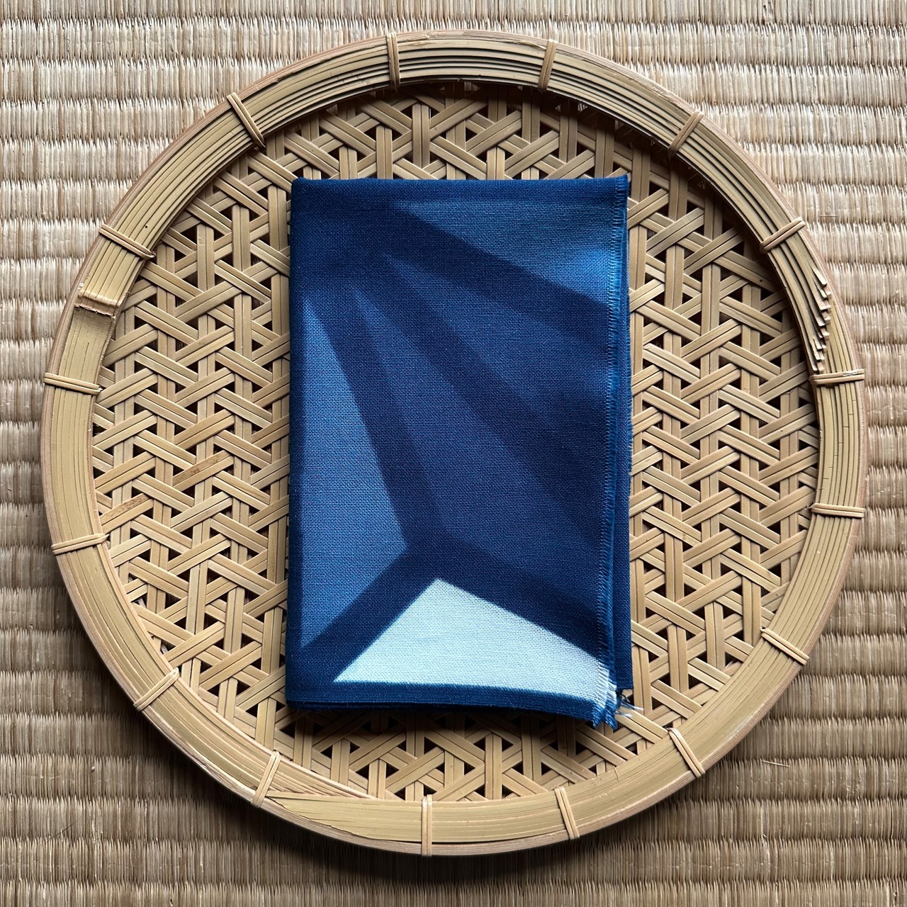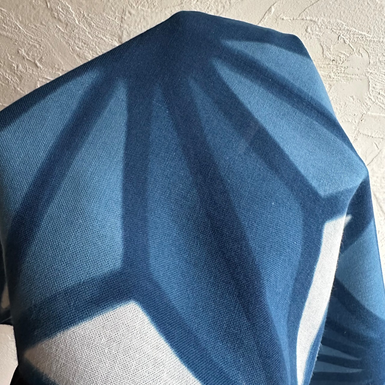 木綿100%の布に絞りを施し、藍で染め上げました