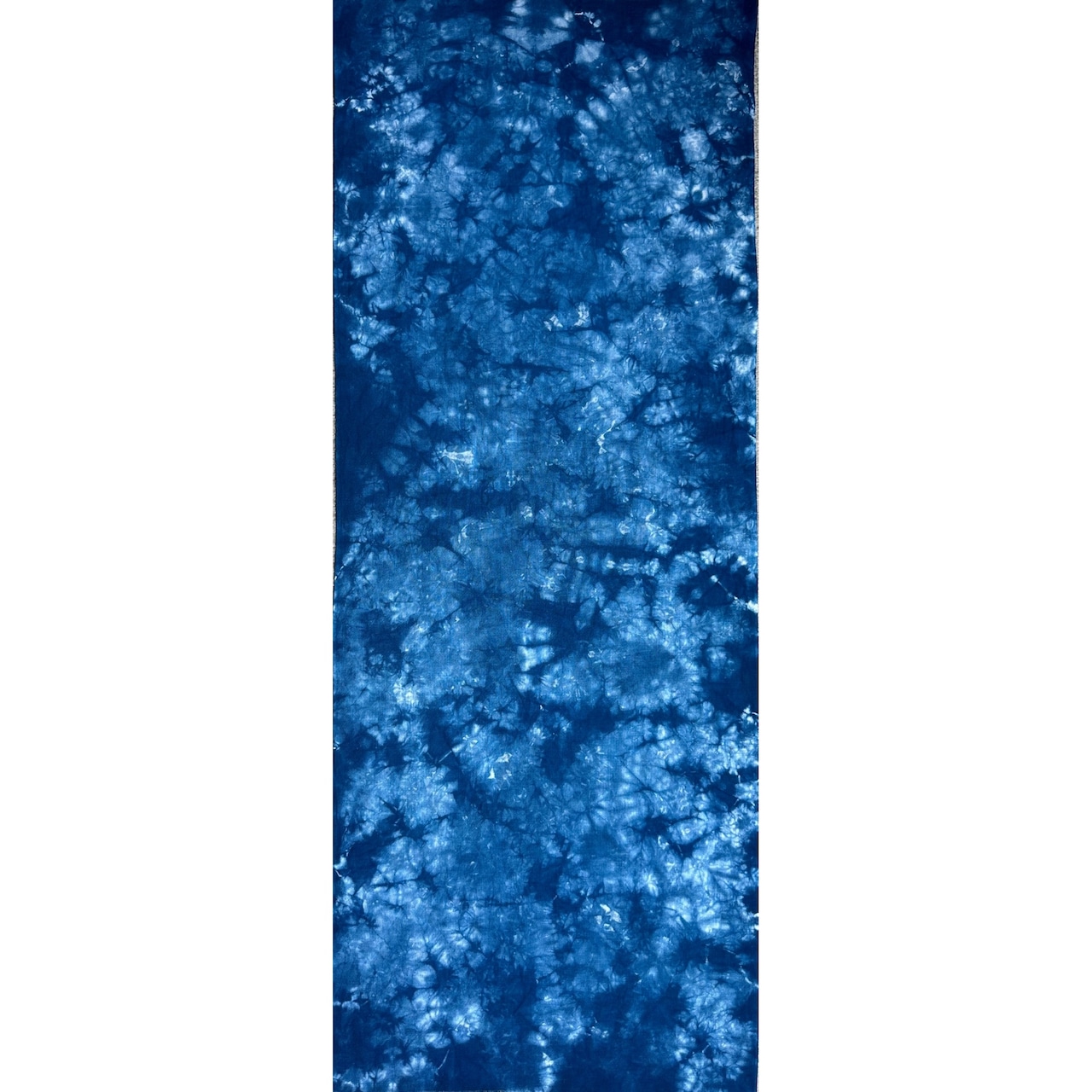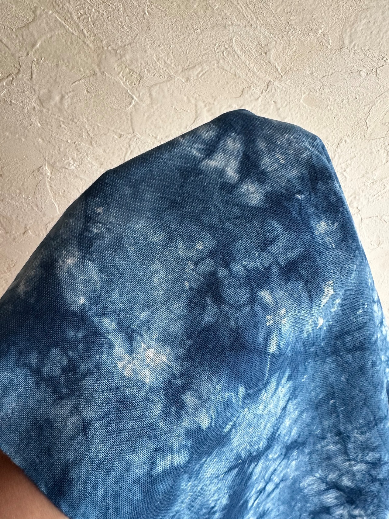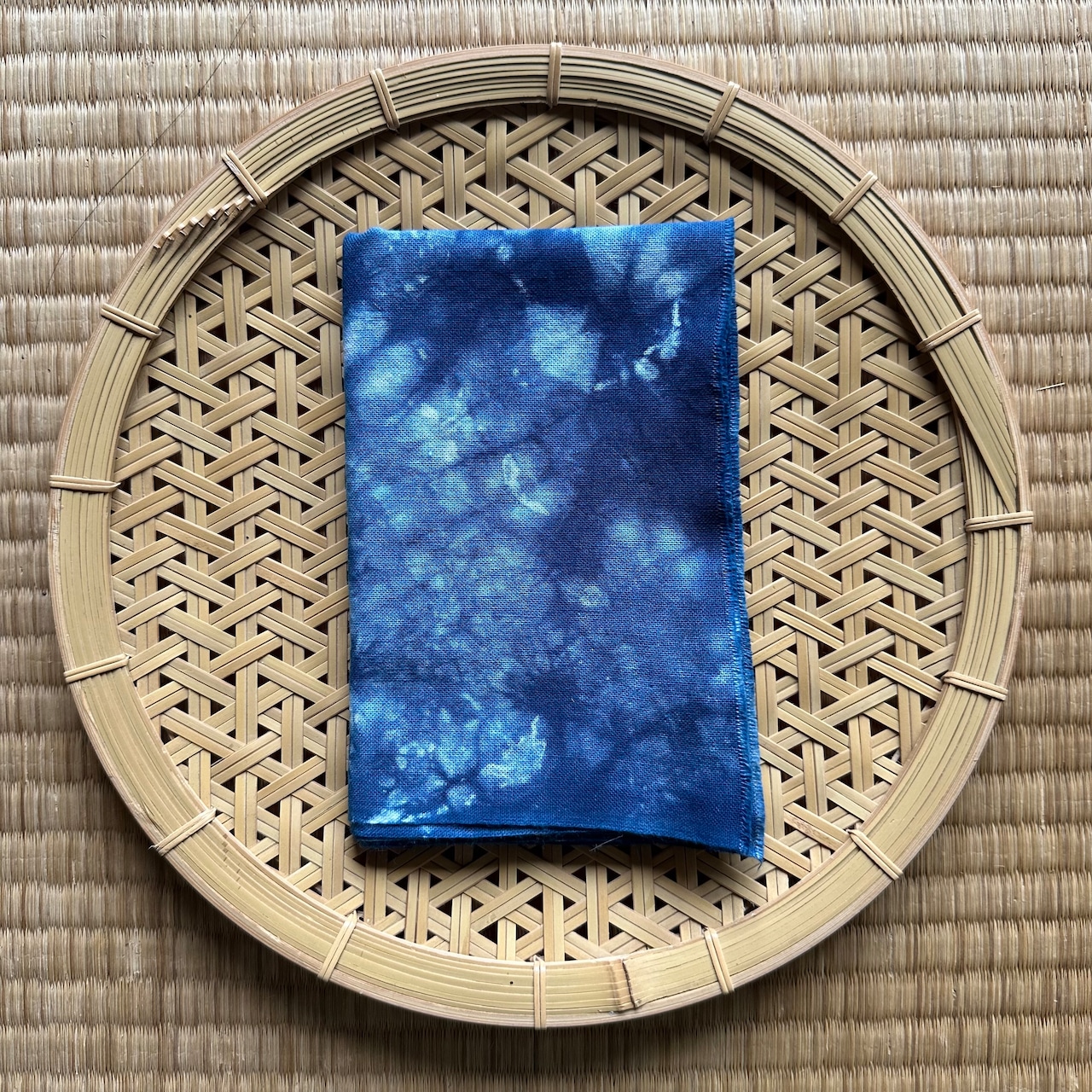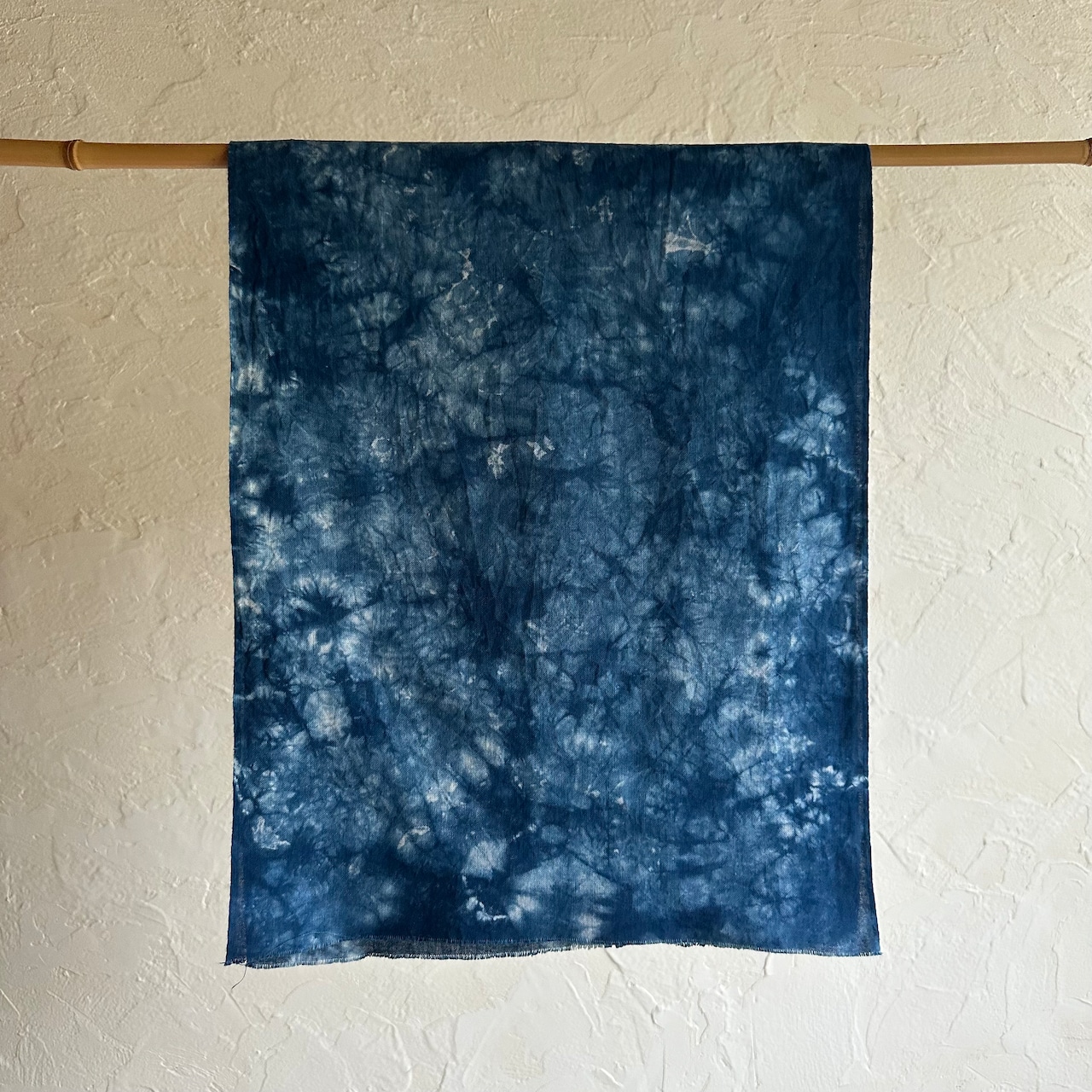 叢雲絞りという技法を用いて、木綿100%の布に一枚一枚絞りを施し、藍で染め上げております