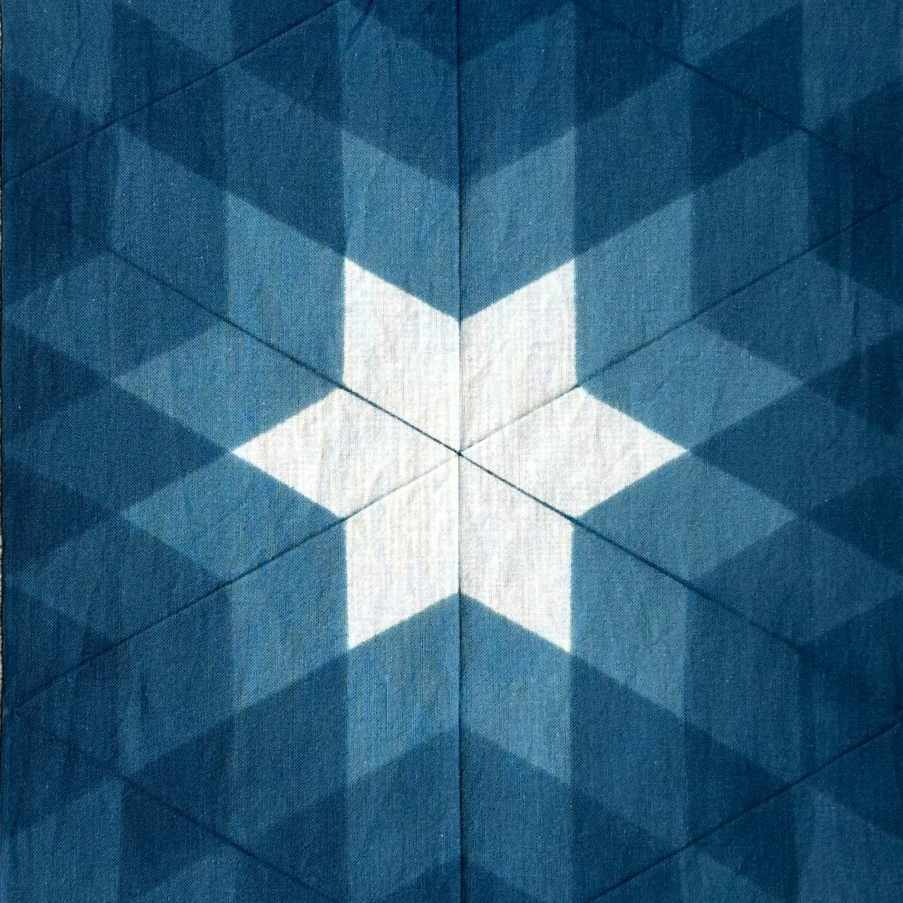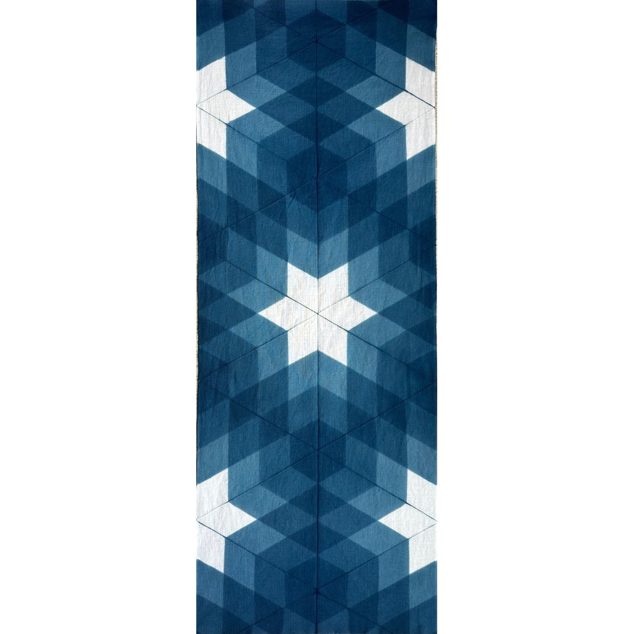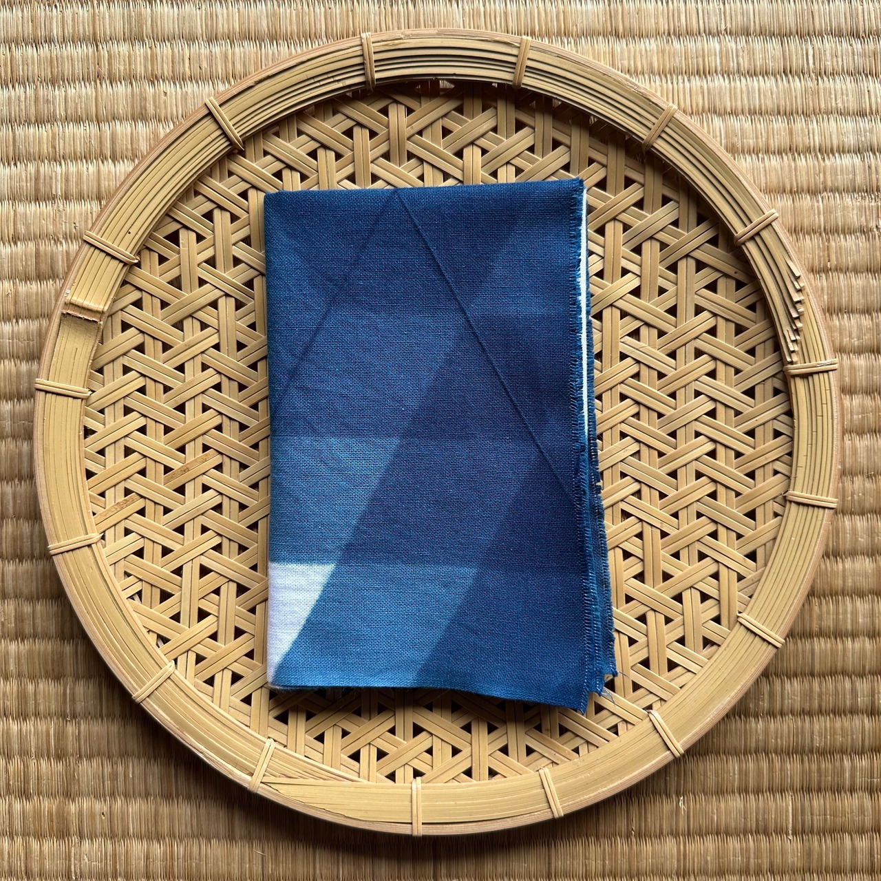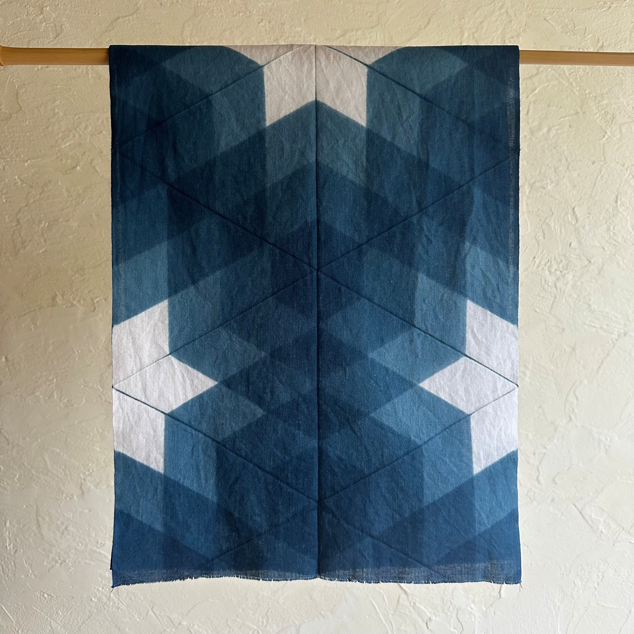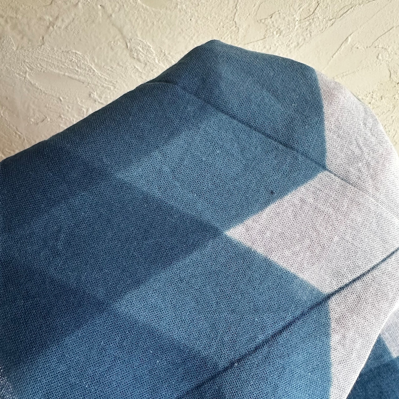 木綿100%の布に一枚一枚絞りを施し、藍で染め上げております