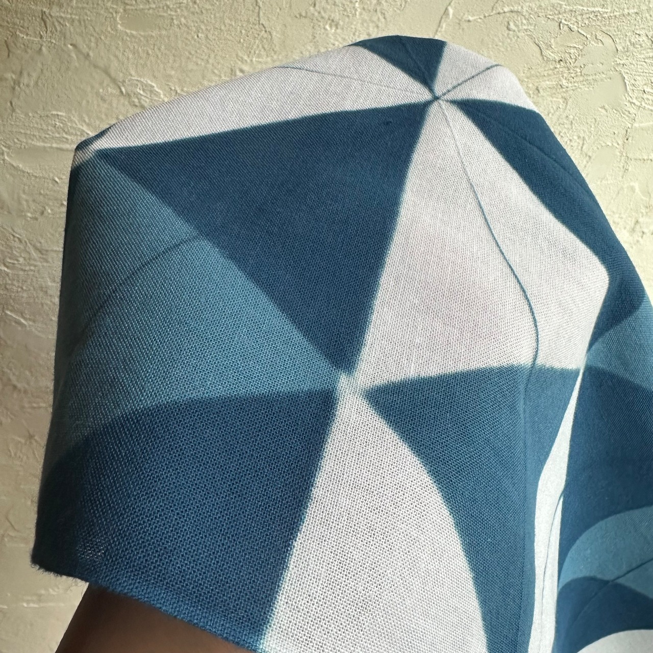 木綿100%の布に一枚一枚絞りを施し、藍で染め上げまております