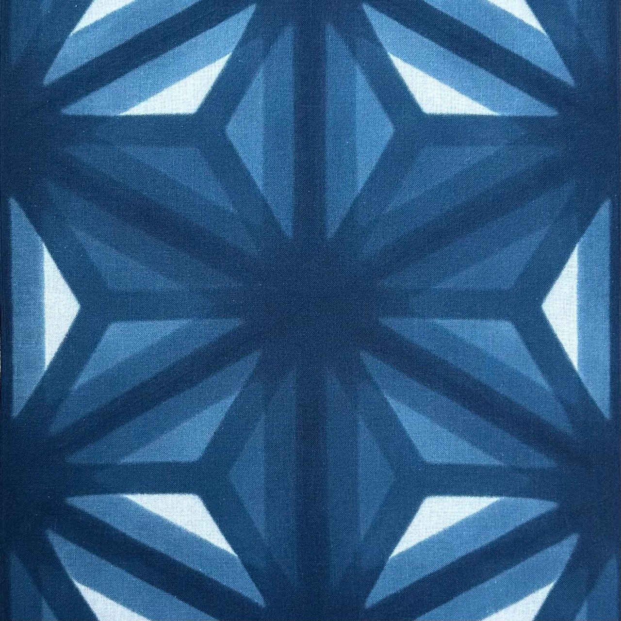 日本でも古くから用いられてきた絣織(かすりおり)に見られる、手仕事ならではのボヤけた様な柄、温もりある柄をイメージしながら、麻の葉模様に一手間加えて柄を表現しました