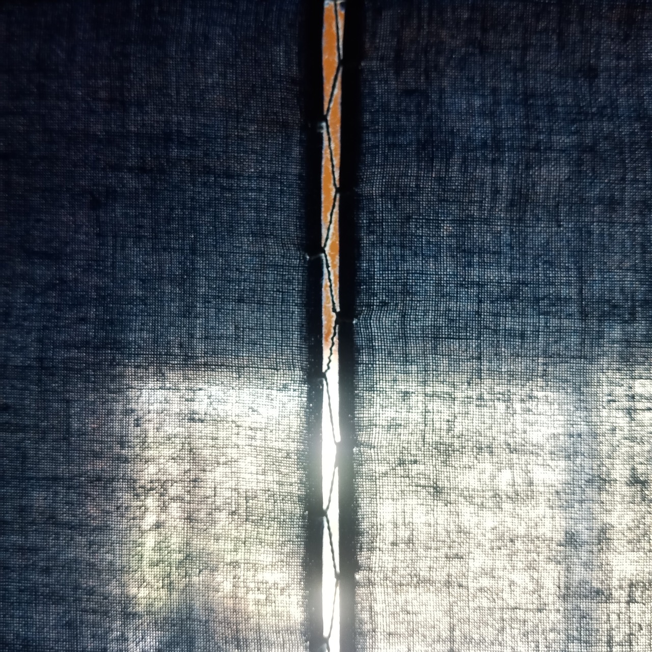 極薄手の木綿布に一枚一枚絞りを施し、藍で染め上げております